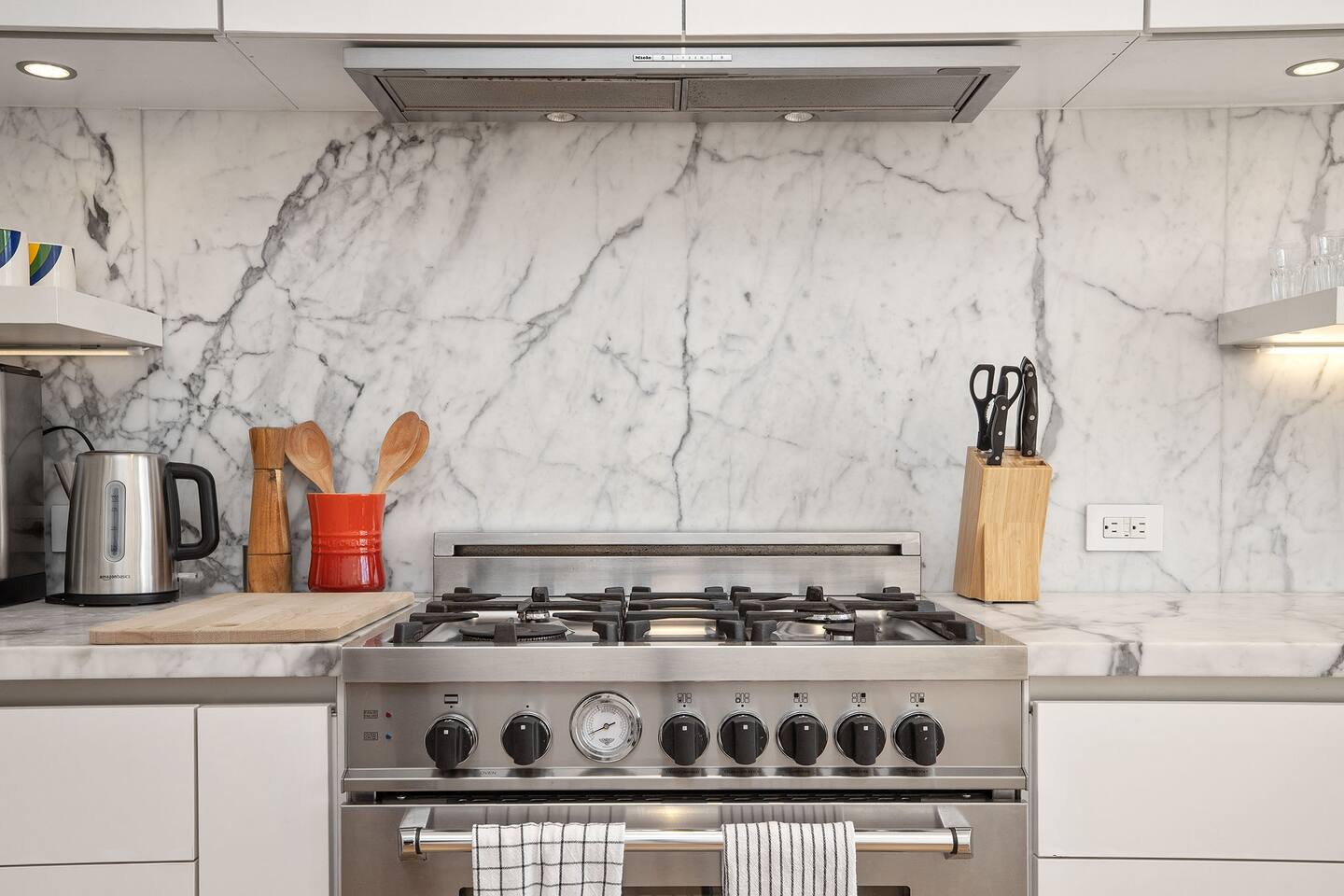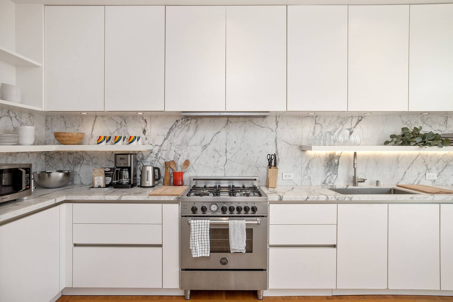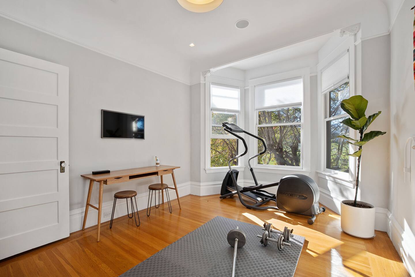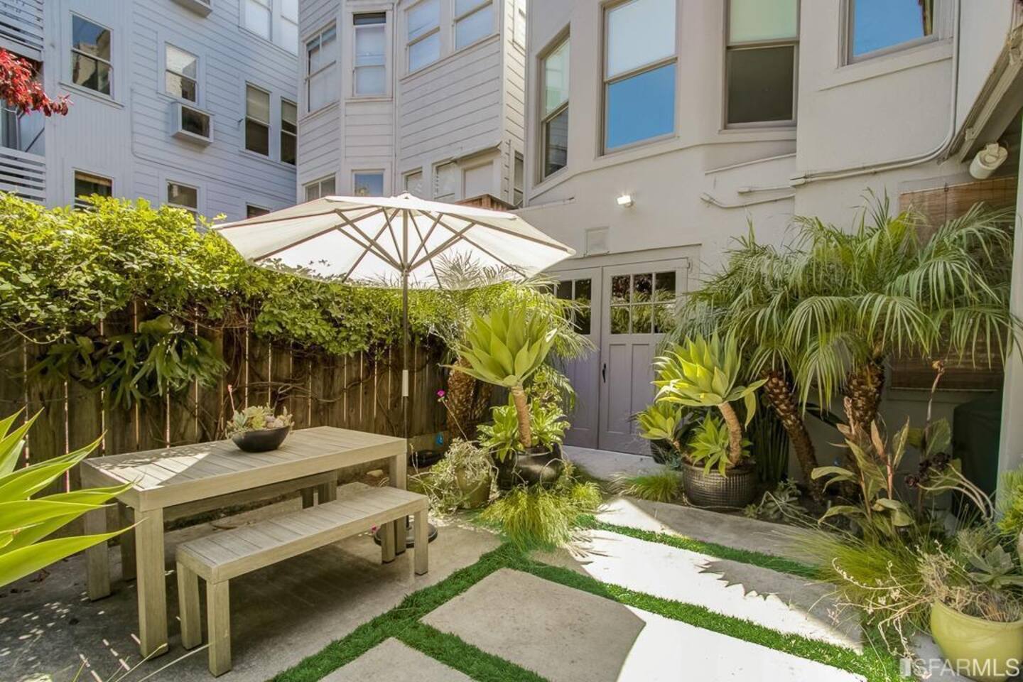 Dine at home with our local dining delivery recommendations or prepare your own in the chef's kitchen of floating shelves, marble slab counter and backsplash, large stainless-steel refrigerator, stainless steel range and oven with hood, and a dishwasher. Bi-Rite Market is around the corner on 18th Street for inspiration. Listen to music and podcasts on 8-inch in-ceiling stereo pair speakers in each of six rooms — three bedrooms, living room, dining room and kitchen — via the Sonos app on your smartphone. Brighten or dim each room's architectural pendants and flush lights via the Lutron app on your smartphone. Soothe in the verdant backyard with raised deck, BBQ grill, deck couch and chairs, dining table, and native plant landscaping. Marvel at the Edwardian-era building finishes including cove ceilings, crown molding, and wainscoting.