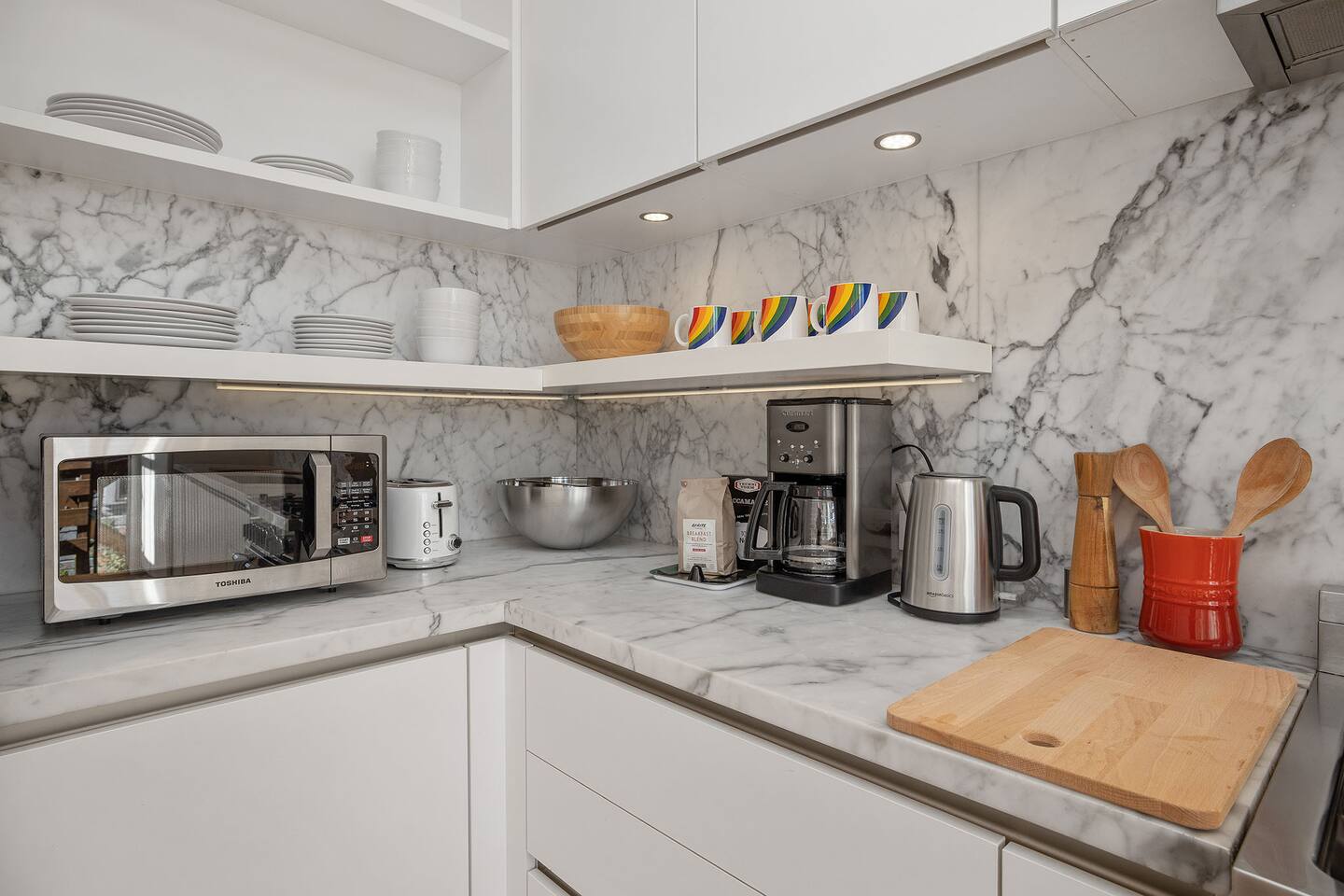The Guest Annex is the middle of three flats above the ground floor parking garage. The other two units are owner-occupied. Please be considerate of all building residents. The in-unit Miele brand laundry washer and dryer are located in the kitchen nearest the back door. Full calendar month stays preferred by host.