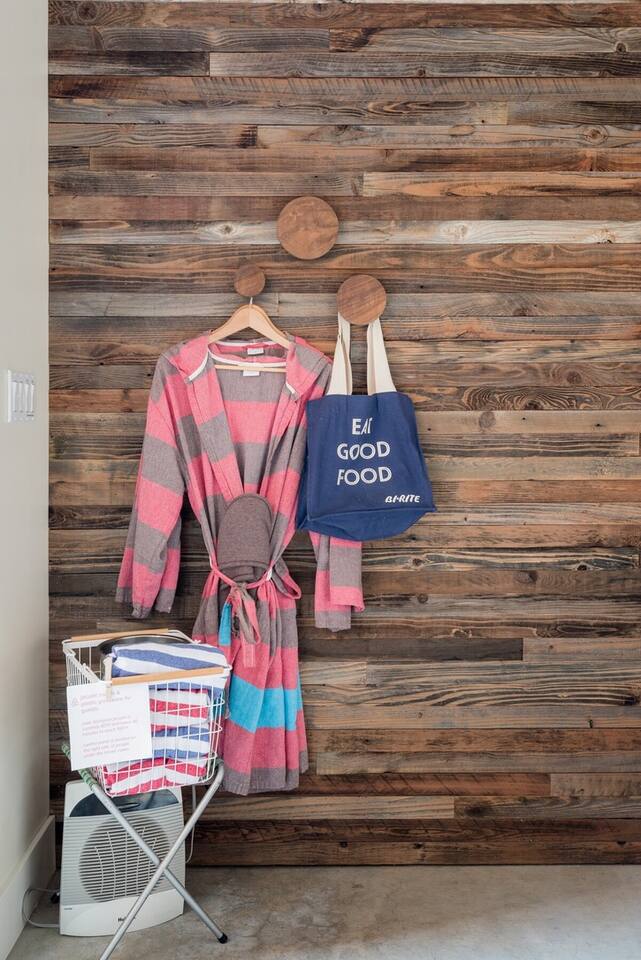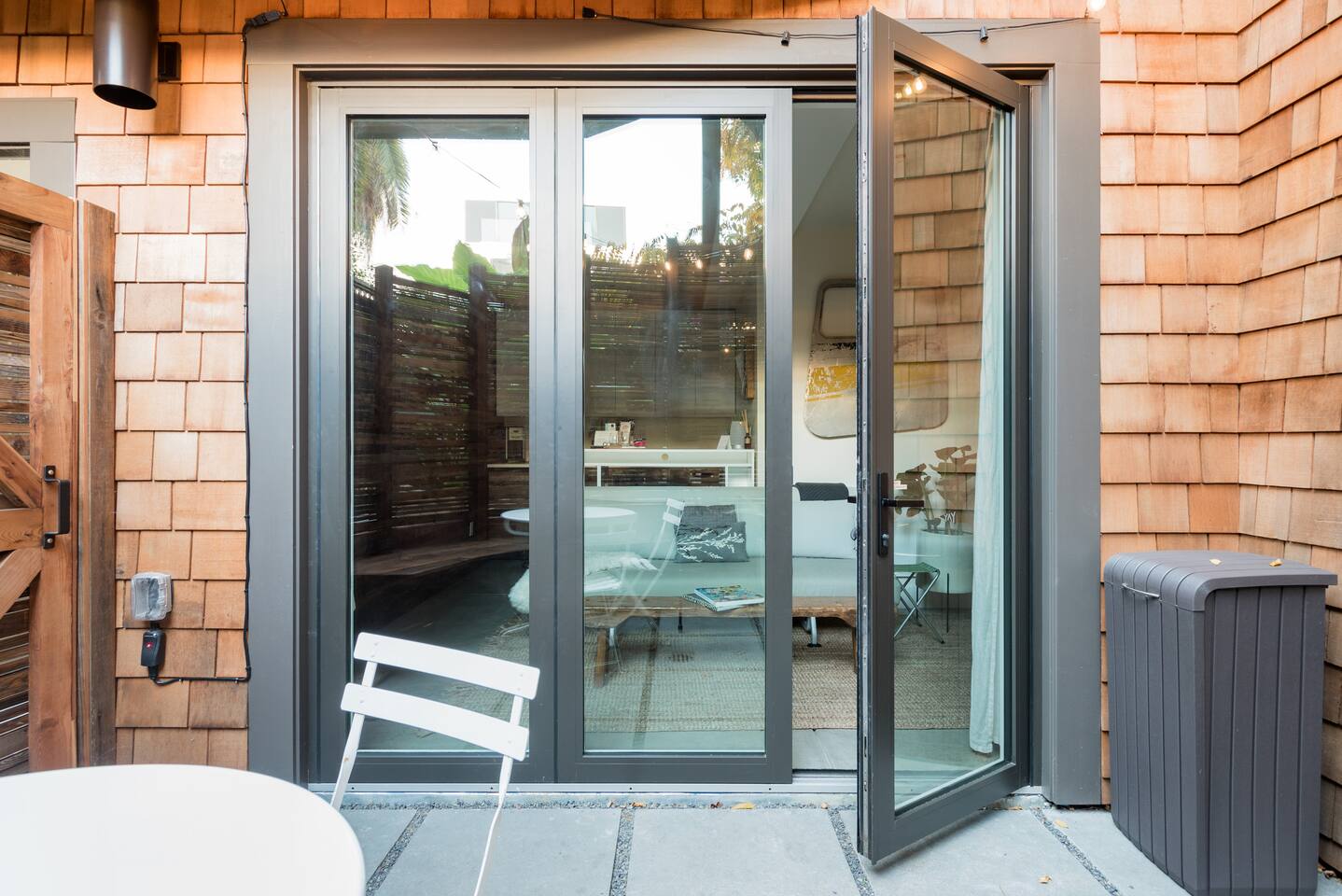 Guests access the full guest cabana and patio through a sidewalk-level door. We provide confirmed guests with a thorough Cabana Guest Handbook via Airbnb.