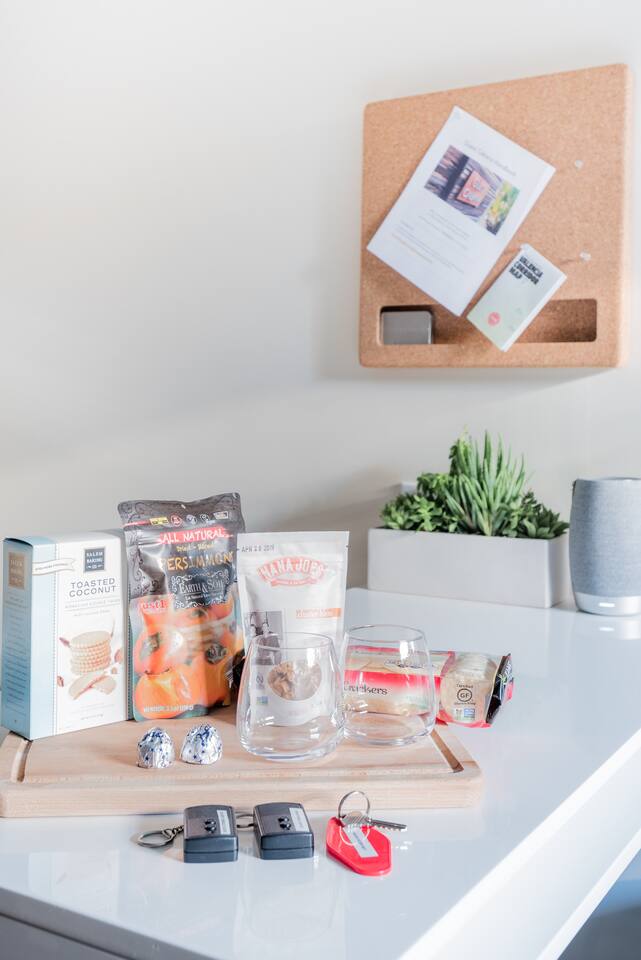 Arrive to coffee, teas, chilled rosé, and local savory and sweet snacks. Chill with friends at Dolores Park with the provided picnic blanket, tote bag, and essentials. Stay up late working remotely or binge-streaming a series over the gigabit Wi Fi Internet access. Relax in robes and slippers listening to your music on the wireless speaker.